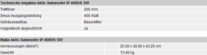 1x Aktiv-Subwoofer IP 4000/6 SW