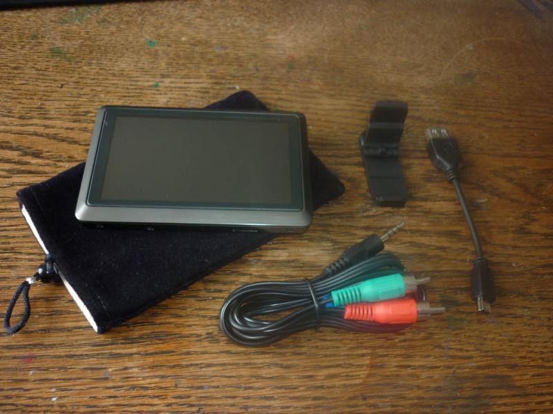 Mit dem TV-Out-Kabel kann der Player über Composite- oder Komponentenanschluss an den Fernseher angeschlossen werden, durch die minimalistische Fernbedienung eignet er sich dann auch als Player für zuhause, der dann auch 720p-Videos in nativer Auflösung wiedergibt.