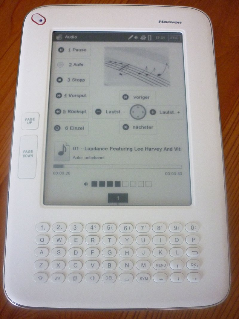 Positiv überrascht hat der integrierte MP3-Player des Hanvon N526: Der Klang ist wirklich gut, wenn man die mitgelieferten Kopfhörer ignoriert und stattdessen qualitativ hochwertige anschließt. Nach dem Start des Players läuft er im Hintergrund weiter und untermalt so das Lesevergnügen akustisch.