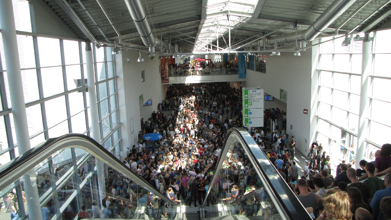 Drei Pressekonferenzen an einem Tag, da fühle ich mich gleich wieder in meinem Element. Wer einen Eindruck von der letzten GamesCom haben möchte, hier habe ich ein Bild von letztem Jahr (am Sonntag, glaube ich).