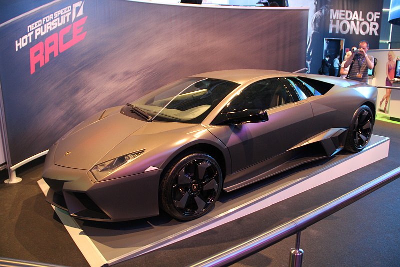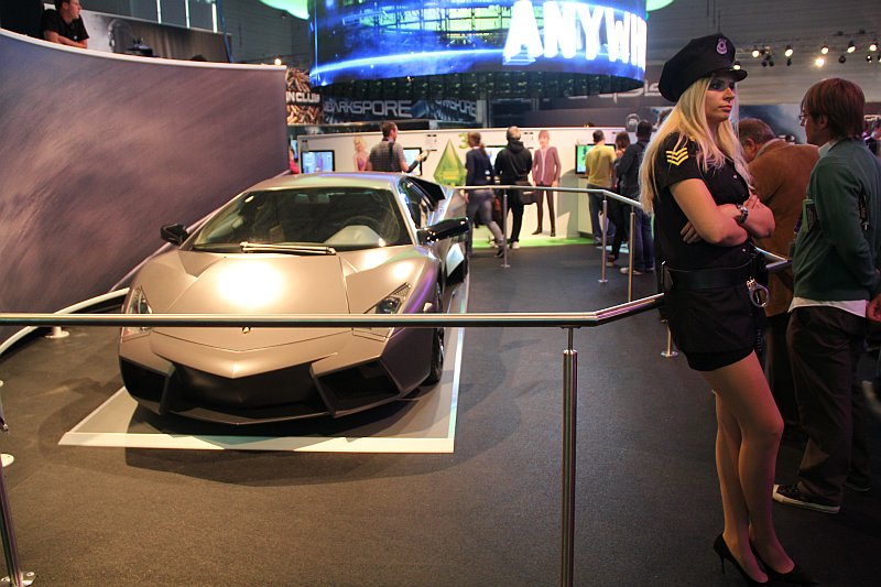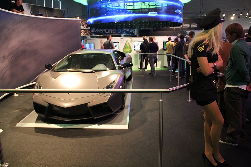 Am Electronic Arts Stand auf der GamesCom stand er, der Lamborghini Reventon, eines der seltensten Automobile der Welt und wartete darauf fotografiert und bestaunt zu werden. Autos und Games passen halt einfach gut zusammen.
