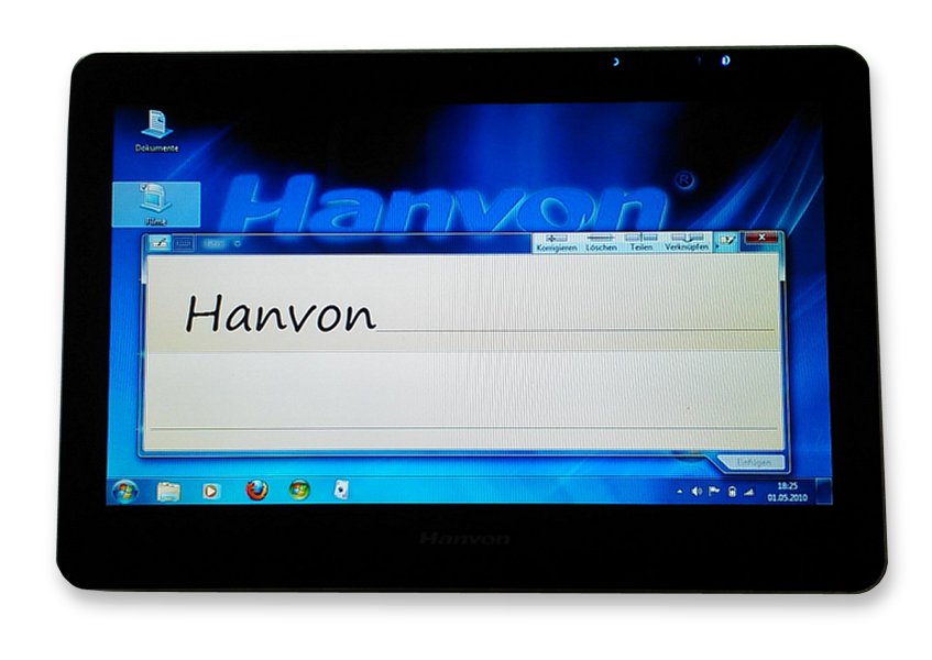 Soeben hat mich die Papyrus GmbH darauf aufmerksam gemacht, dass das Hanvon Touchpad B10 (kaufen) nun endlich auch in Deutschland erscheinen wird. Lange hat es gedauert, denn auf der CES 2010 in Las Vegas im Januar konnte ich am Intel Stand bereits einen Prototypen dieses Windows 7 Tablets begutachten und ein erstes Video drehen. Auf der Cebit im März konnte man bereits fertige Modelle antesten. Nächste Woche soll es soweit sein, das 10-Zoll Tablet mit Intel Celeron ULV 743 mit 1.3GHz, 250GB Festplatte und 2GB Arbeitsspeicher wird für 771,24€ in Deutschland verkauft.
