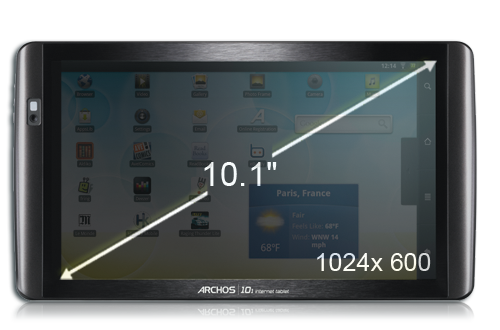 Der Archos 101 ist ein 10,1-Zoll Tablet mit kapazitivem Touchscreen und einer Auflösung von 1024 x 600 Pixeln. Als Betriebssystem wird Android 2.2 verwendet. Die Akkulaufzeit soll beim Surfen bis zu 10 Stunden betragen.