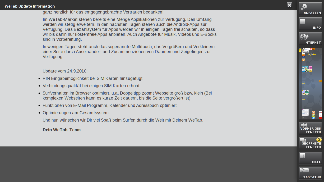 Soeben wurde auf der offiziellen Facebookseite des WeTab angekündigt,das ein neues Update verfügbar ist.