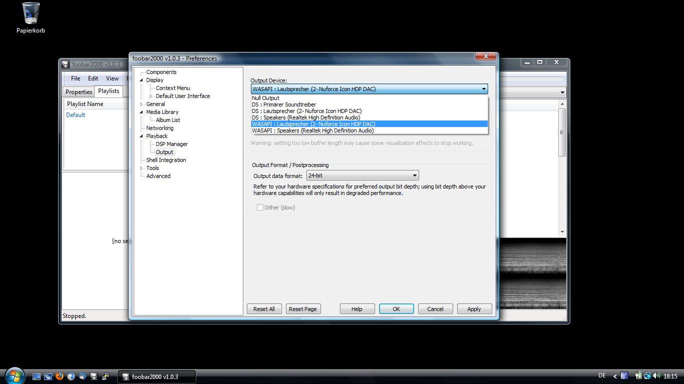 Nach der Verbindung mit dem Computer via USB-Kabel stehen beide DACs (Digital-Analog-Konverter) quasi sofort als Wiedergabegeräte zur Verfügung. Eine Treiberinstallation ist weder unter Windows noch OSX nötig. Evtl. muss das neue Gerät in der Playersoftware wie Winamp oder Itunes noch als Standard-Ausgabe gewählt, aber damit sind die Einstellung auch schon erschöpft.