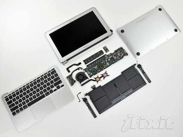 Die Jungs von iFixit haben wieder zugeschlagen und zwar beim neuen MacBook Air 11. Sie haben das neue 11.6-Zoll MacBook Air auseinander genommen und gewähren uns einen Einblick in das neue Unibody Subnotebook. Wie auch beim ersten MacBook Air nimmt der Akku einen Großteil des Gehäuses ein, die eigentliche Hardware ist auf ein Minimum beschränkt und wurde auf eine kleine Platine gequetscht, die vielleicht ein Drittel Platz beansprucht. Um Platz zu sparen wurde die CPU und der Arbeitsspeicher direkt auf das Mainboard gelötet. Die Variante mit der CPU kennen wir ja von den meisten Notebooks, aber dass man nun auch den Arbeitsspeicher fest verlötet und dem Benutzer somit auch keine Möglichkeit mehr gibt sein Notebook zu erweitern, wird hoffentlich nicht zum Standard.