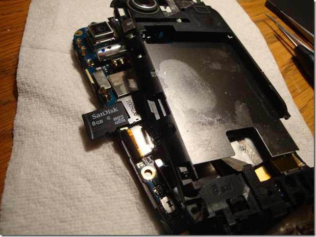 Derzeit gibt es kein Windows Phone 7 Smartphone bei dem man den vorhandenen Speicher einfach mit einer Speicherkarte erweitern kann, dies hatte ich ja in einem Beitrag bereits negativ erwähnt. Am Beispiel des HTC 7 Mozart sieht man aber woher das Smartphone seine 8GB internen Speicher bezieht, nämlich über eine im Inneren integrierte microSD Karte.