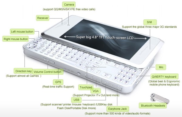 Ich hätte beinahe nicht mehr damit gerechnet, aber das ITG xpPhone das auf der Computex 2009 das erste Mal vorgestellt wurde, ist nun verfügbar und kann bestellt werden. Das Display hat eine Diagonale von 4,8-Zoll und es kommt ein AMD Prozessor in Verbindung mit Windows XP Embedded zum Einsatz.Der Preis geht ab 666$ zzgl. Versand los für das 8GB Modell ohne UMTS und mit DOS und geht hoch bis 876$ für das Spitzenmodell mit 16GB Speicher, UMTS, Windows XP Embedded. Bilder und Videos findet ihr nach dem Break.
