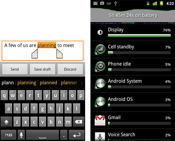 Soeben wurde die SDK zu Android 2.3 aka Gingerbread veröffentlicht. Vorallem Gaming wird bei Android 2.3 groß geschrieben, Animationen werden flüssiger und Eingaben werden schneller umgesetzt. Wie man im Bild sehen kann wurde auch die Copy & Paste Funktion überarbeitet und bietet nun eine präzisere Auswahlmöglichkeit wie man es auch beispielsweise von iOS kennt. Das Samsung Nexus S wird das erste Smartphone sein welches Android 2.3 einsetzen wird.