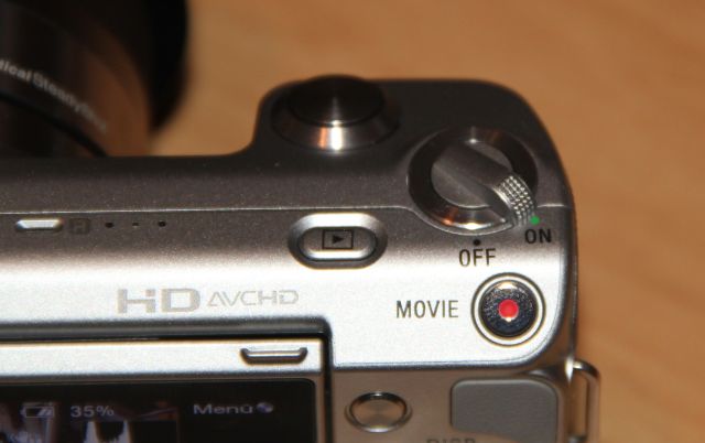 Der Kamerabody der NEX-5 ist aus solidem Kunststoff gefertigt. Der Objektivsockel ist aus Aluminium. Jede Taste der Kamera hat einen ordentlichen Druckpunkt, das Navigationsrad, welches gleichzeitig ein Steuerkreuz ist, lässt sich einfach justieren und hat dabei keinen zu großen Widerstand. Man kann entweder durch Drehen oder Drücken in die jeweilige Richtung durchs Menü navigieren. Der Griff, welcher sich auf der rechten Seite des Bodys befindet, ist mit griffigem Gummi überzogen. Das Display, welches mit über 900.000 Bildpunkten ordentlich auflöst, ist vertikal schwenkbar, wodurch „Überkopf-Aufnahmen“ oder aufwändige Makroaufnahmen sehr einfach zu handhaben sind.