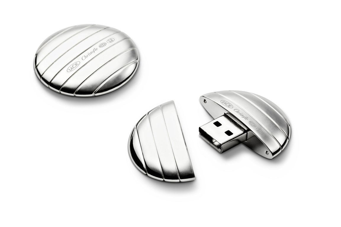 Der USB-Stick wird in Frankreich handgefertigt und dort versilbert. Er hat eine Speicherkapazität von 4GB und wird ab sofort in den Filialen von Christofle und im Onlineshop von LaCie verkauft, zum Preis von 100 EUR.