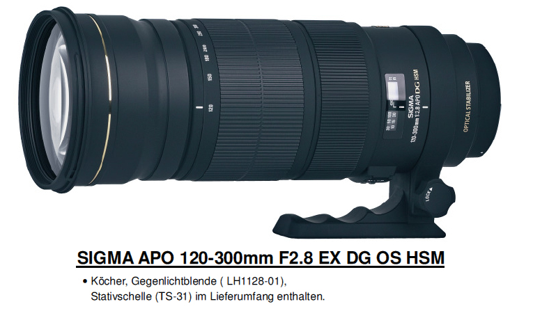 Sigma wird sein Repertoire an Objektiven auch dieses Jahr wieder aufstocken und hat angekündigt, fünf neue Objektive zu veröffentlichen. Als erstes ist schon im März das lichtstarke, 3000 Euro teure Sigma 120-300mm F2.8 EX DG OS HSM AP und das Sigma 150 mm F2.8 EX DG OS HSM MAKRO zu einen Preis von 1300 Euro verfügbar.
