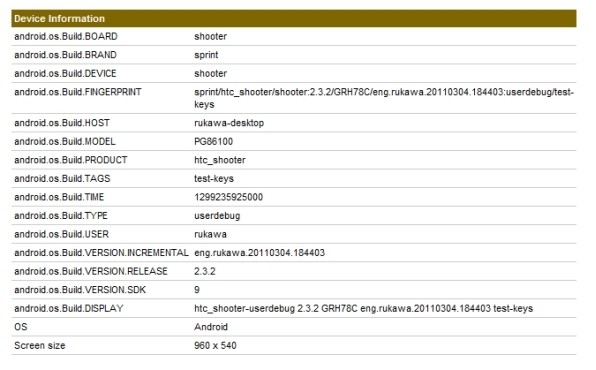 Nun sind auch Informationen über das HTC Shooter durch die GLBenchmark Datenbank durchgesickert. Zu den Daten gibt es Folgendes: 1,2 GHz Snapdragon Dual-Core-Prozessor von Qualcomm, qHD Display mit 960 x 540, deshalb liegt es nicht fern das, dass Smartphone wie auch beim HTC Pyramid ein 4,3 Zoll Touchscreen an Board hat. Es weist viel Ähnlichkeit mit dem HTC Pyramid auf und wird allerdings unter Android 2.3.2 laufen.