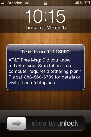 Hier in Deutschland gibt es zwar noch keine Reglementierung seitens der Anbieter, aber in den USA hat sich einer der Großen, AT&T bei Kunden (vornehmlich iPhone Besitzer) per SMS gemeldet, bei denen unerlaubtes Tethering ohne entsprechenden Tethering Vertrag vermutet wird. Diese sollen sich bei AT&T melden oder ihr jetziger Vertrag wird für den nächsten Monat automatisch in einen Tethering Vertrag (DataPro 4GB – 45$ / Monat) umgewandelt. Na hoffentlich lesen auch alle diese SMS..
