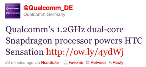 Im Inneren arbeitet ein 1,2GHz Dual-Core Qualcomm Snapdragon Prozessor wie Qualcomm auf seiner offiziellen deutschen Twitterseite bekanntgegeben hat und intern sind 4GB verbaut, die durch eine mitgelieferte 8GB Speicherkarte noch erweitert werden. Natürlich kann sich Vodafone da auch geirrt haben und wir glauben diese Daten erst wenn sie HTC offiziell bekannt gibt.