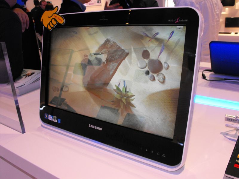 Auch Samsung wagt sich mit dem Samsung MU200 nun in den All-In-One PC Markt und macht nahmhaften Herstellern wie HP, ASUS, MSI und Lenovo somit Konkurrenz, wieso nicht – Konkurrenz belebt das Geschäft und freut uns Kunden. Das am Samsung Stand auf der CES 2010 vorgestellte Modell kommt in schwarz-weiß, wobei mir eine komplett weiße Variante wohl besser gefallen hätte, denn nur die Front ist glossy schwarz und zieht somit Fingerabdrücke magisch an. Das 20-Zoll Display ist Multitouch-fähig. Ansonsten hat Samsung an ein DVD-Laufwerk gedacht und auf der Rückseite des Gerätes an eine Serviceklappe um ggf. Festplatte oder RAM auszutauschen bzw. zu erweitern. Auf der Rückseite sind die Mehrheit der Anschlüsse vorhanden, so finden wir hier 4x USB, einen LAN-Port, einen Kensington-Lock und den Netzteilanschluss. Auf der linken Seite befindet sich noch eine Klappe mit der Aufschrift „Digital Ports“, die ich leider bei dem Ausstellungsgerät nicht öffnen konnte. Welche Anschlüsse sich dahinter verbergen kann ich also noch nicht genau sagen. Preise und Verfügbarkeit sind leider auch noch nicht genannt worden.