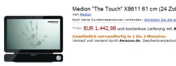 Erinnert ihr euch noch an das Medion The Touch X9613, den High-End All-in-One PC von Medion über den ich vor einigen Monaten berichtet habe? Nun habe ich auf Amazon seinen kleinen Bruder gefunden, den Medion The Touch X9611. Dieser hat ähnliche Spezifikationen wie der X9613, greift aber beispielsweise nur auf einen Intel Core 2 Duo T6600 zurück, statt eines Intel Core 2 Quad Q2000. Auch hat der „kleine Bruder“ nur eine 640 GB Festplatte statt einer 1000 GB Festplatte. Ansonsten dürften die restlichen Spezifikationen übereinstimmen. Auch der X9611 eignet sich hervorrragend als Multimediastation an der Wand, denn es verfügt auch über ein Blu-ray Laufwerk und eine GeForce GT240M Grafikkarte. Der Preis ist mit den angegebenen 1442,98€ wirklich im Luxusbereich angesiedelt, zudem müssen wir uns wohl noch 1-2 Monate gedulden.